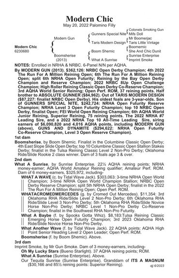 Boomsherise is sister to 3-time NRHA Open World Champion, WHAT A WAVE.
